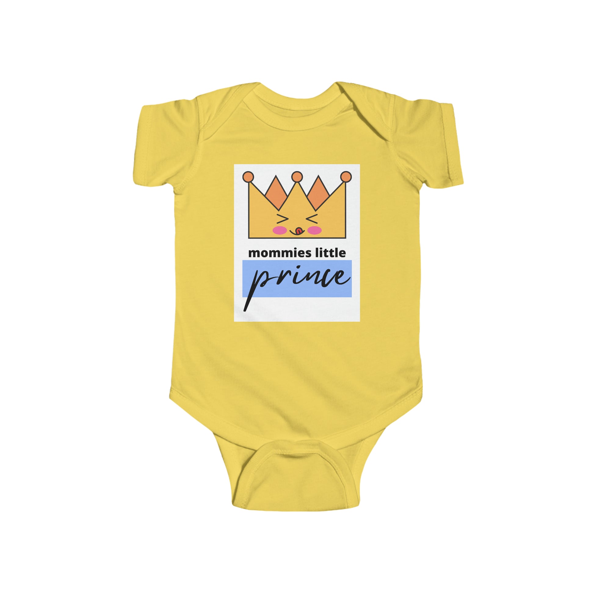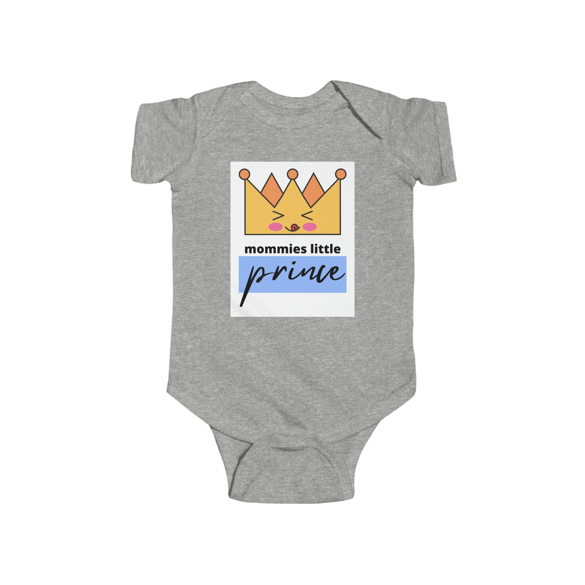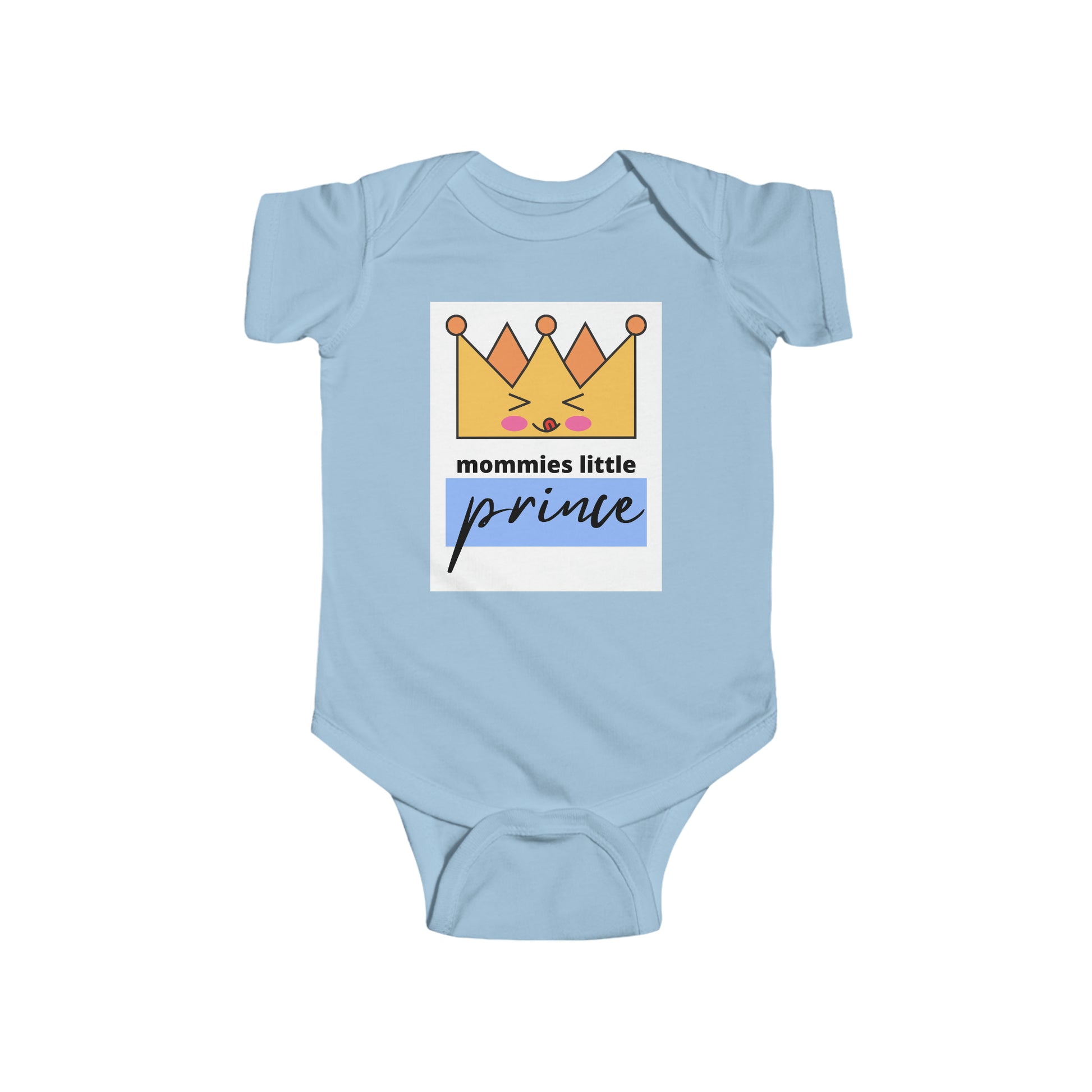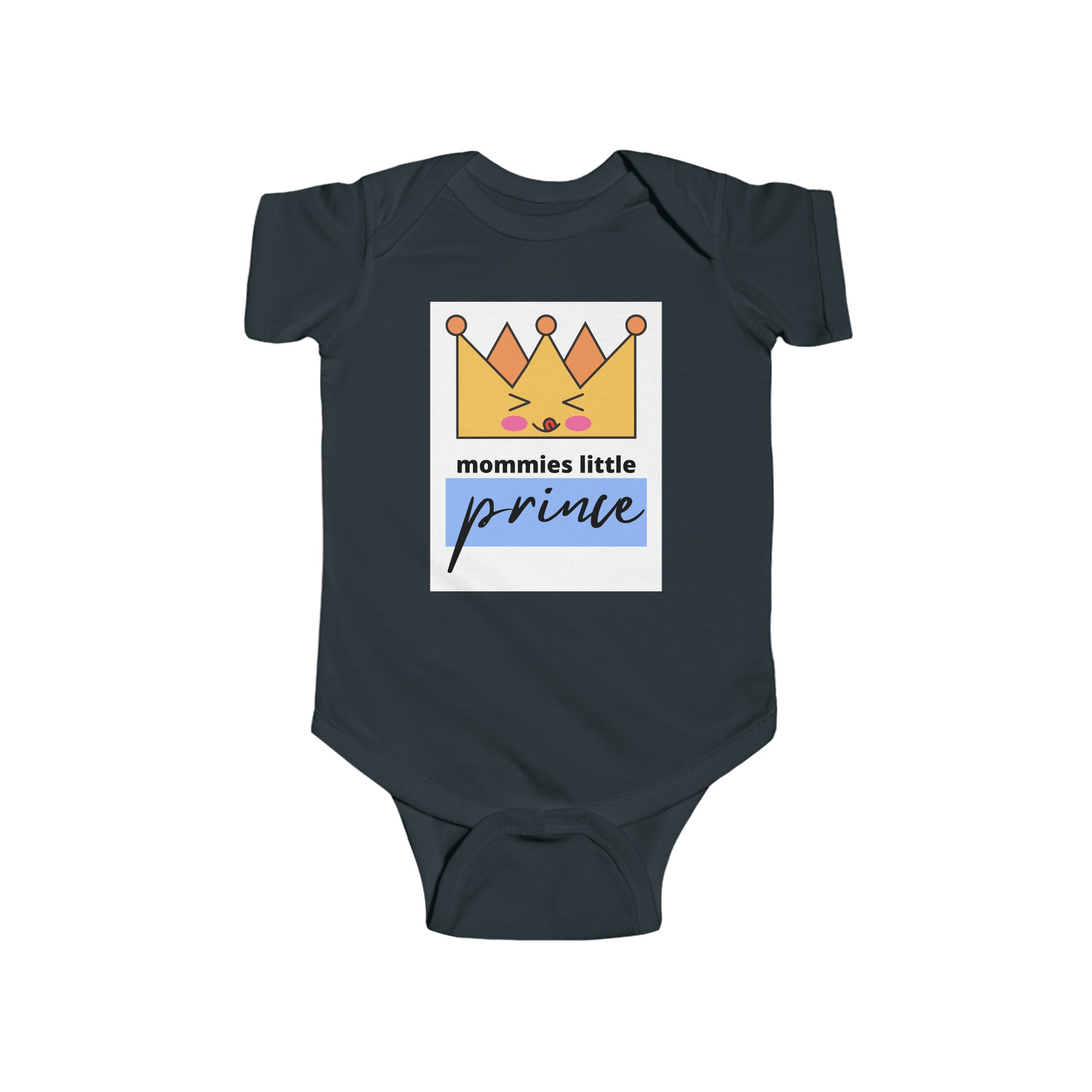 This design says “Mommies Little Prince” and has a cute crown on it. When making a similar design for girls “Mommies Little Princess”, I decided to do one for baby/toddler boys as well. Both of them are so adorable! You can get both if you have a boy and a girl. I’ve also got two other designs that say the same things just different colors and crowns. You’ll definitely want to take pictures of your prince in this bodysuit to keep in your picture book!